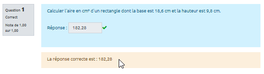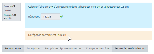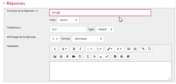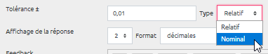 - une tolérance de 0,01 de type Nominal signifie que seront acceptées les réponses comprises dans un intervalle de 0,01 autour de la réponse exacte (+/- 0,01).