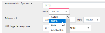 Si vous souhaitez accorder un pourcentage différent en fonction de la précision de la réponse (par exemple 100 % pour la valeur exacte et 50 % pour une valeur approchée à 0,1 près dans la même unité) :