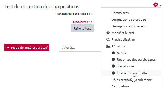 - Cliquer sur Roue crantée → Résultats → Évaluation manuelle