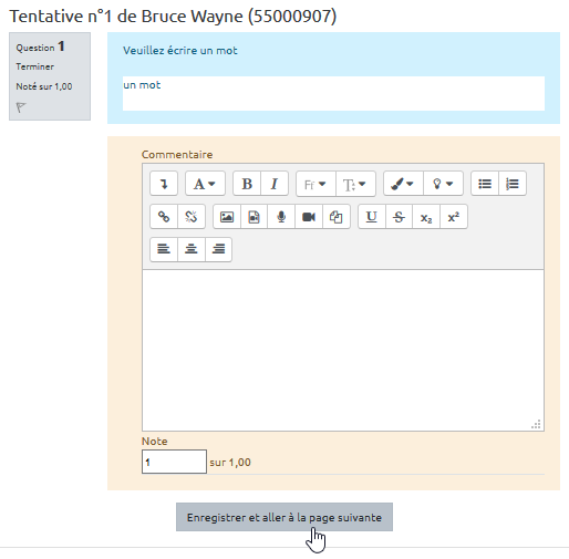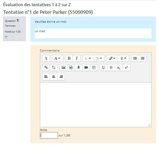 Étape 3 : Inscrire le commentaire et la note souhaitée pour le premier étudiant