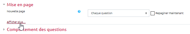 Sur la page de paramètres, nous allons nous intéresser au menu “Comment se comportent les questions” du volet “Comportement des questions”.