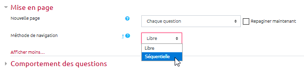 Pour ce faire, nous allons modifier le comportement des questions dans les paramètres du test :