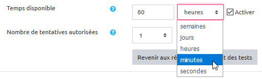 Étape 5 : ajuster le temps de passation