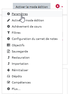 - Aller dans les “Paramètres” du cours :