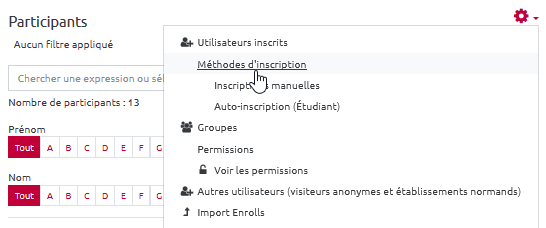 - Aller ensuite dans “Participants”, vérifier la liste des inscrits et notamment si un étudiant n’a pas un rôle autre que celui d’étudiant :