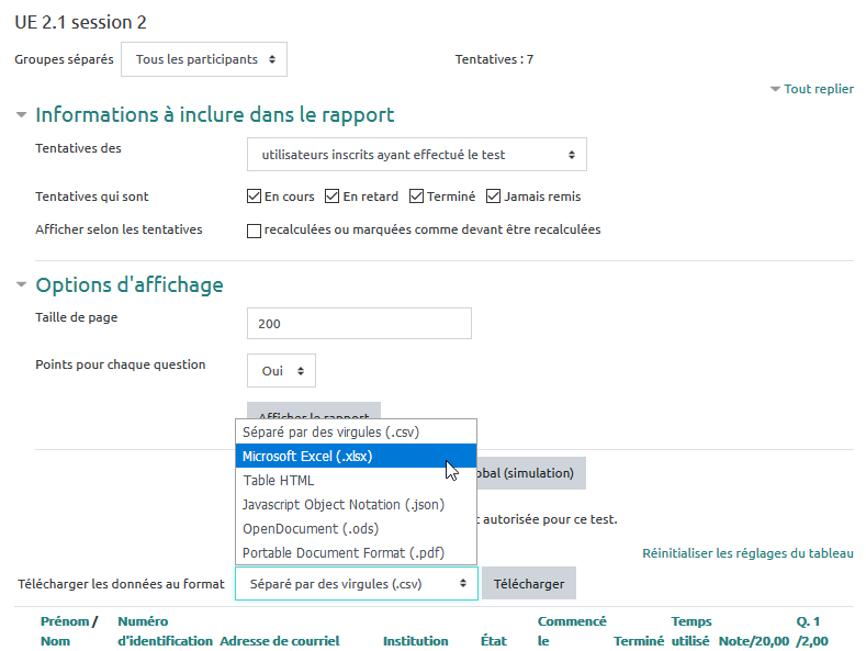 Télécharger les résultats d'un "Test"
