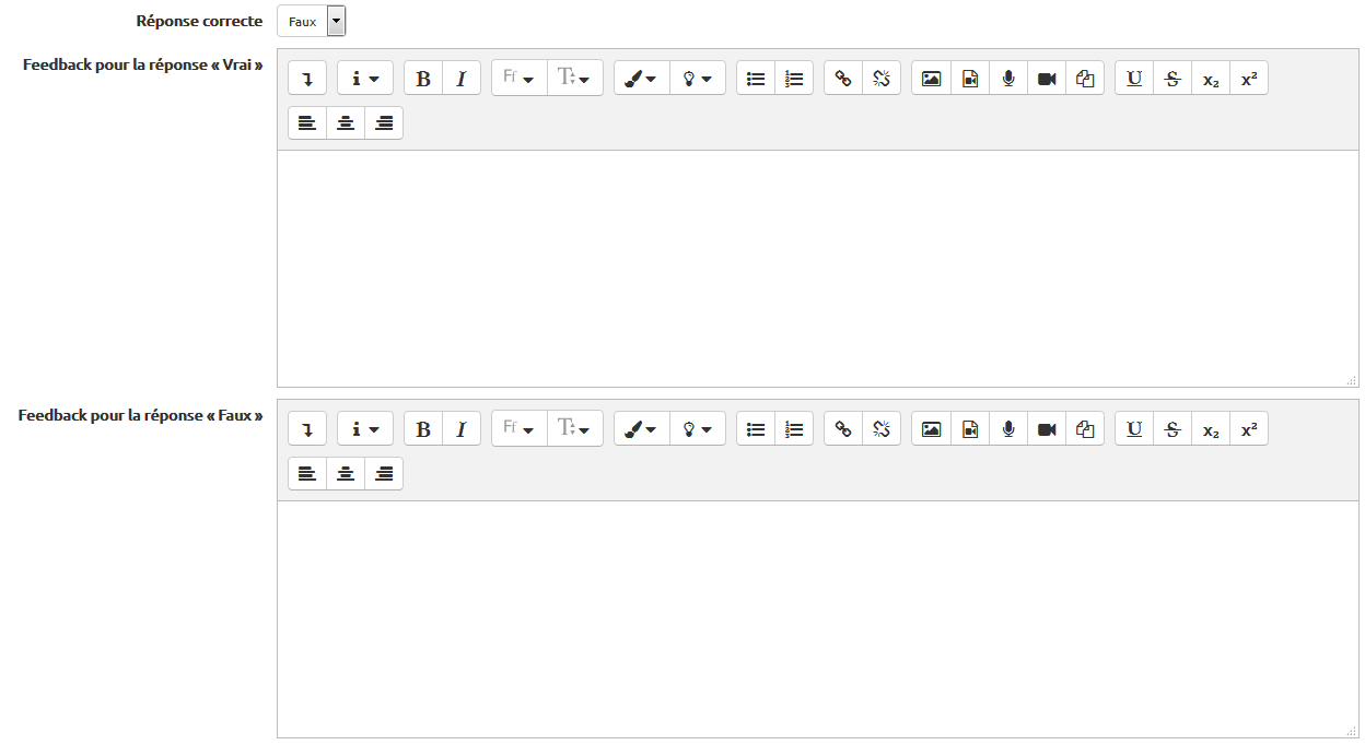 Dans une question Vrai/Faux, l'étudiant dispose d'une proposition qu'il doit identifier comme correcte ou incorrecte et cocher Vrai ou Faux.