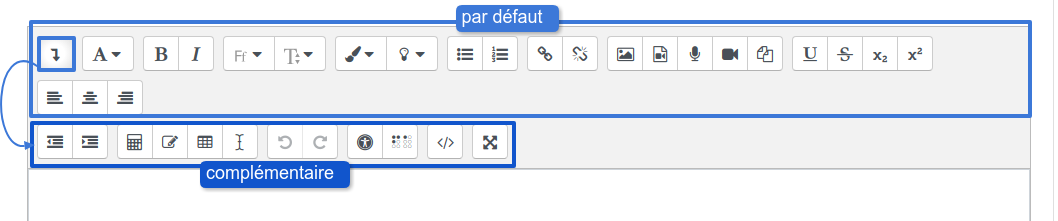 Vous retrouverez fréquemment cet éditeur dès lors que vous ajoutez du contenu de type texte : description du cours, d'un devoir, ressource de type étiquette, page, etc.