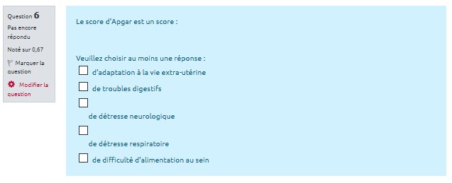 Exemple : les propositions n°3 et 4 de cette questions sont décalées. Il s'agit d'un problème typique de mise en forme lié à un copier-coller.