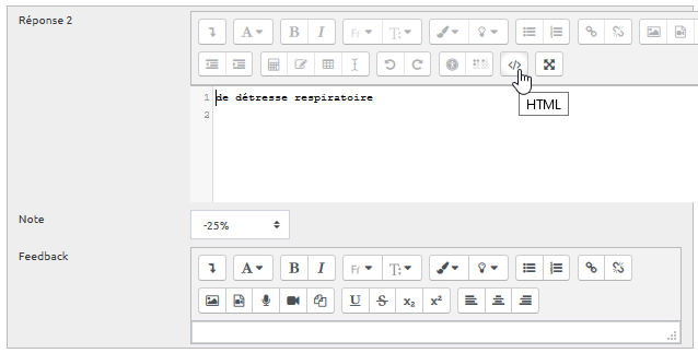- Une fois qu'il ne reste plus que le texte “brut”, cliquer de nouveau sur le bouton “</>” :