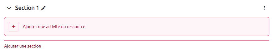 Après avoir activé le mode édition dans l'espace de cours, des liens rouges sont affichés.
