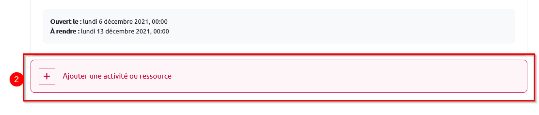 2. Cliquez sur « Ajouter une activité ou une ressource »