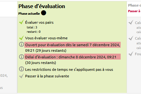Au début de la phase d’évaluation, voici comment s’affiche le tableau des phases :
