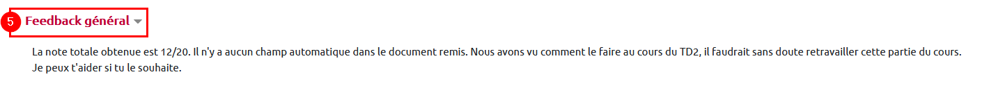 5. Sous le « Formulaire d’évaluation » vous voyez le “Feedback général” rédigé par l’étudiant évaluateur.