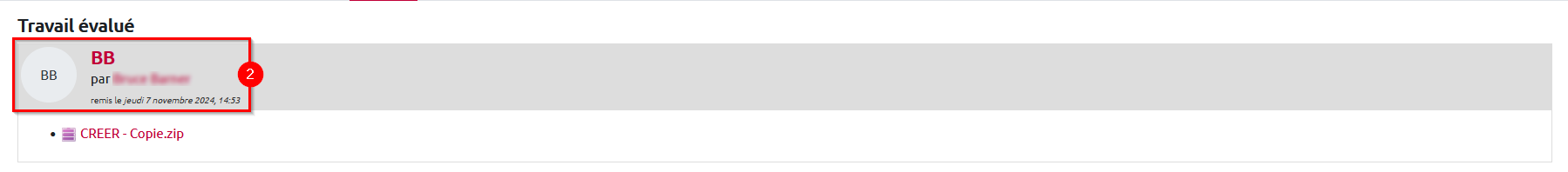 3. Tout en haut du « Formulaire d’évaluation », vous voyez qui a évalué ce travail ainsi que la note donnée.