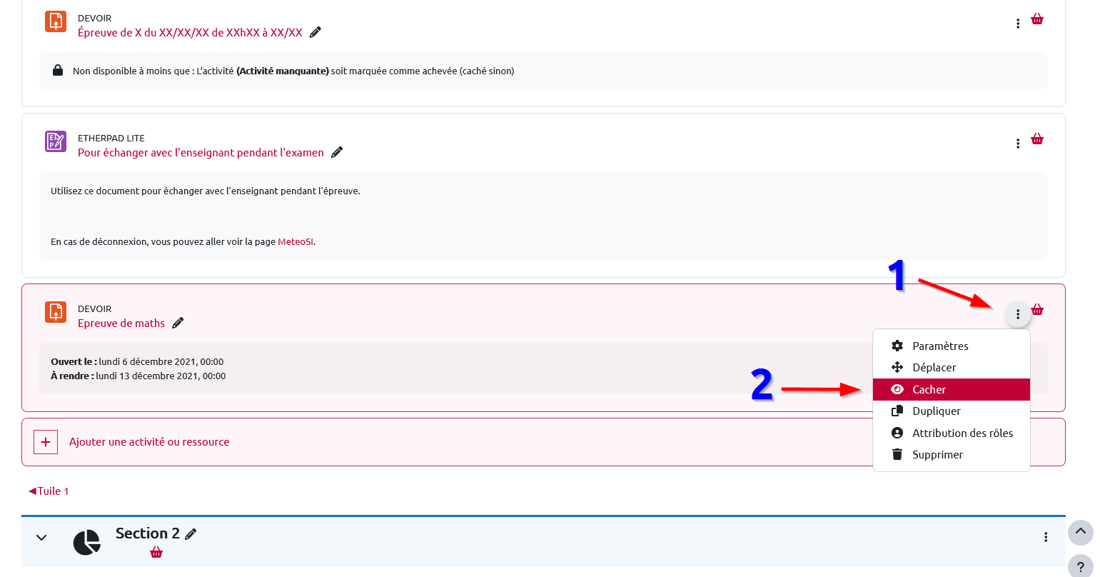La seconde méthode consiste à cacher le devoir aux étudiants