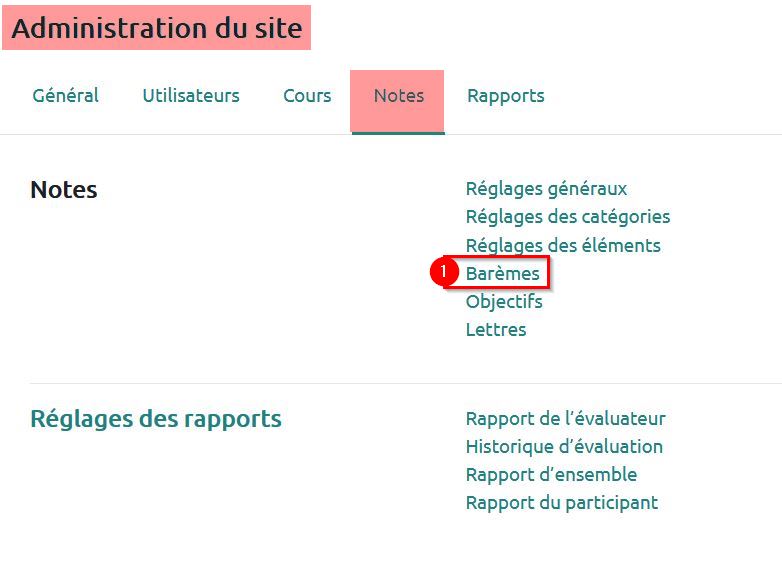 1. Aller dans administration du site > Notes > Barèmes.
