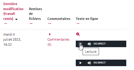 - Il suffit de cliquer sur le bouton “Modifier le travail”, puis de sauter une ligne et de re-cliquer sur le bouton micro. Une fois terminé, il y a aura deux enregistrements :