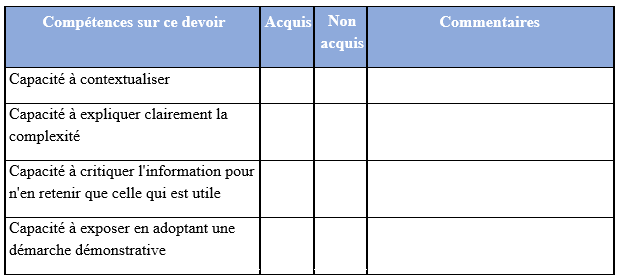 ainsi que la note finale, la date de correction, l'identité du correcteur et le commentaire d'ensemble (ou feedback).