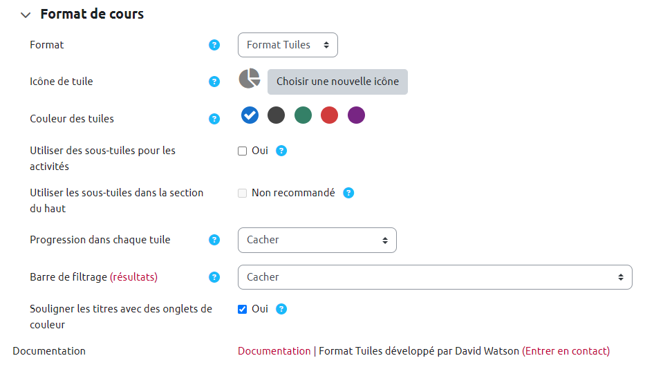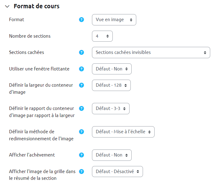 Pour en savoir plus, se reporter à la documentation officielle Moodle : Format de cours