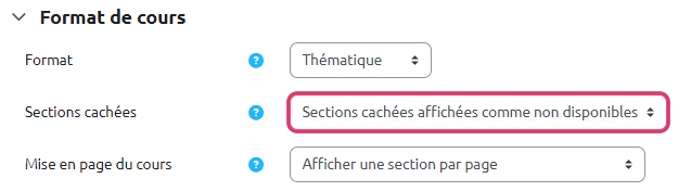 Si l'on souhaite que les sections apparaissent repliées par défaut, il faut choisir le paramètre Sections cachées affichées comme non disponibles.