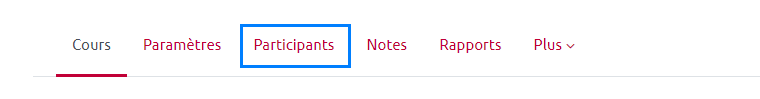 Dans tout espace de cours, vous avez à votre disposition un onglet “participant” dans le menu général en haut de la page