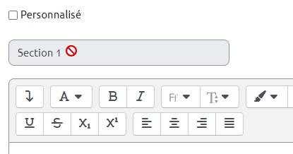 Si l'on opte pour la deuxième solution, on arrive alors sur un champ grisé, avec comme titre Section, ou Tuile, et un numéro. Le curseur de la souris indique que la saisie n'est pas permise. Pour l'autoriser, il faut cocher la case Personnalisé.