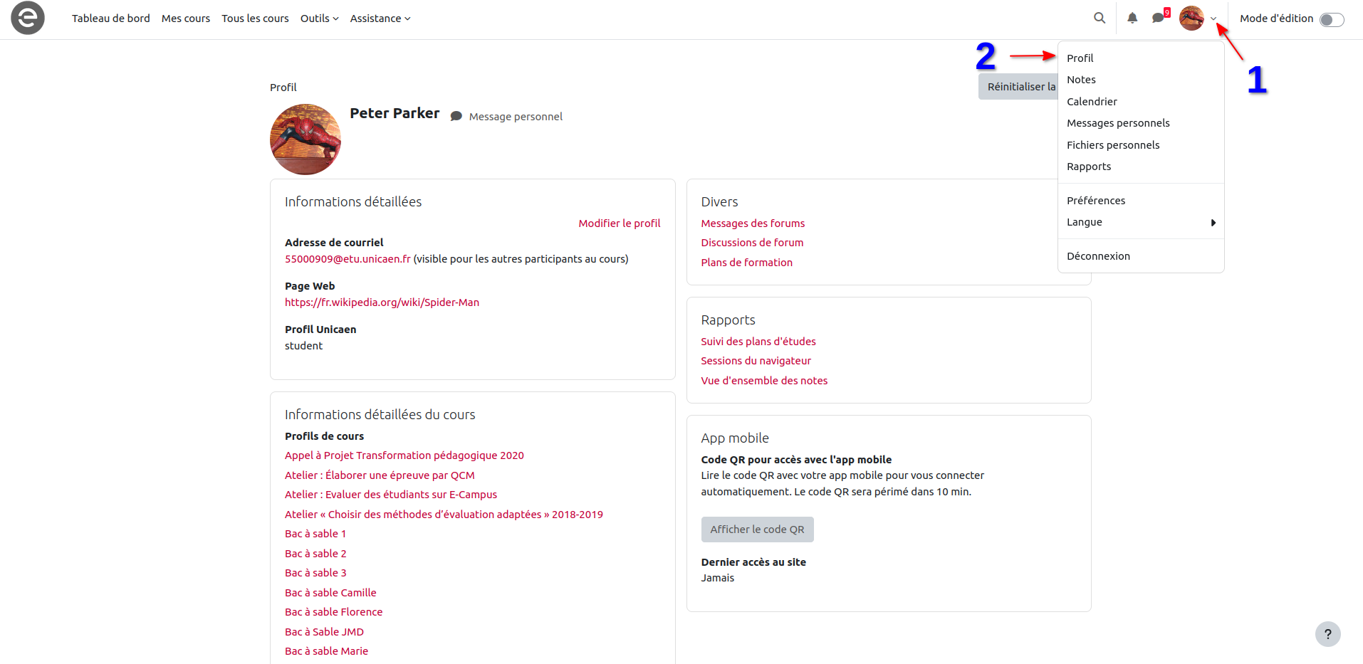 Tous les utilisateurs ont accès a leur profil. Il est possible de le :