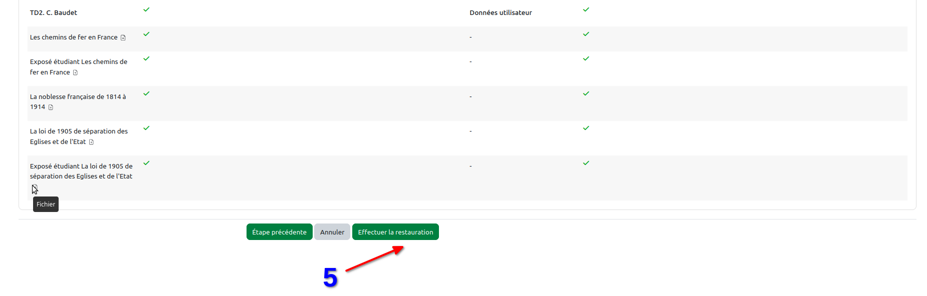 Il est possible aux enseignants de restaurer le cours de l’année précédente.