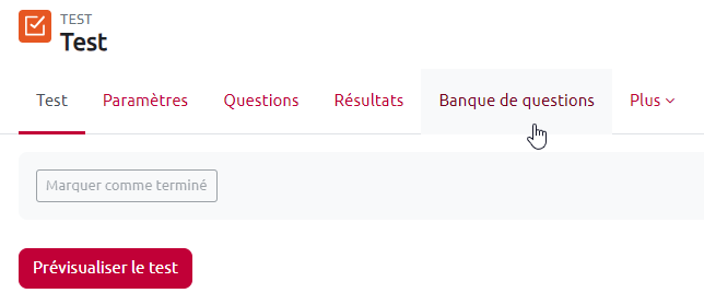 - Cliquer sur le test, puis sur “Banque de questions*” en haut de l'activité Test :