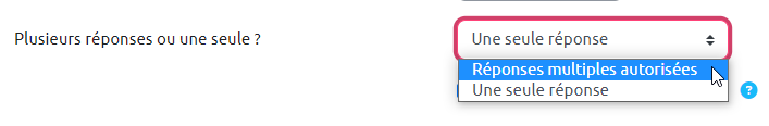 Les questions à réponse multiple utilisent les cases à cocher (carrés) qui permettent de cocher plusieurs propositions. Dans les questions à réponses unique, la case à cocher sera sera remplacé par une bouton radio (rond à cocher) qui ne permettra pas de sélectionner plusieurs réponses.