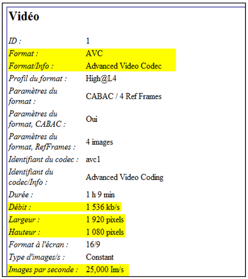 Si le débit global moyen affiche plus de 1500 kb/s, la vidéo nécessite une conversion.
