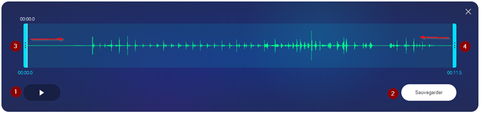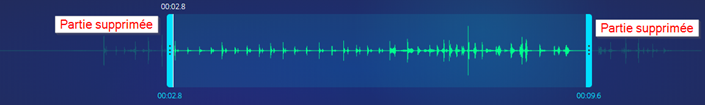 - Par un cliquer/glisser, déplacez la poignée bleue du début pour supprimer un long silence par exemple ou un bruit