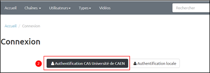 Cliquez sur Authentification CAS Université de Caen, puis saisissez les informations de votre compte numérique (identifiant et mot de passe).