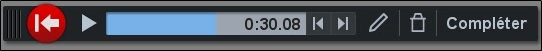 Les commandes d’un lecteur vidéo s’affichent alors pour procéder à une visualisation de la captation en cours. Cette barre de commande est déplaçable en cliquant sur le bord gauche de la barre (avant le bouton rouge) et en glissant la barre ou vous souhaitez.