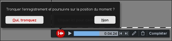 Exemple 1 : On utilise la Flèche Arrière pour placer le curseur à l’endroit où l’on souhaite tronquer l’enregistrement (la partie grise sera supprimée).