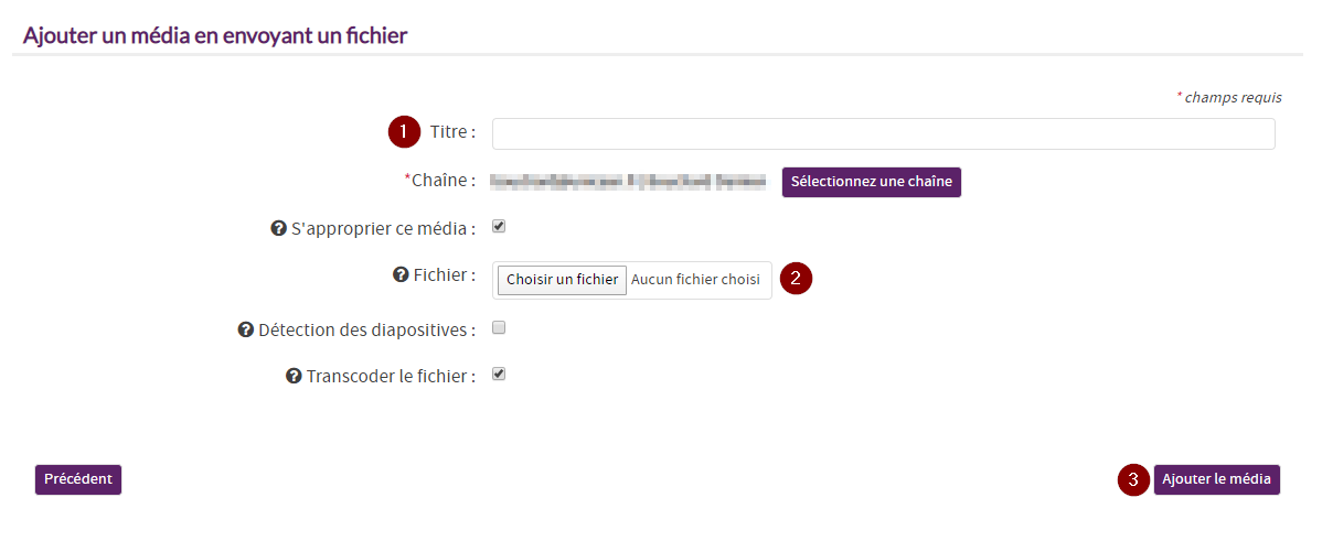 Vous n'aurez pas accès immédiatement à l'ajout de contenu. L’équipe vidéo du CEMU doit vous donner les droits. Adressez un mail à cemu.video@unicaen.fr pour :