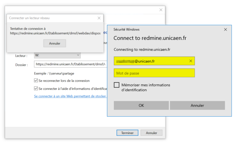 1. La connexion se fait de la même manière : il faut Connecter un lecteur réseau.