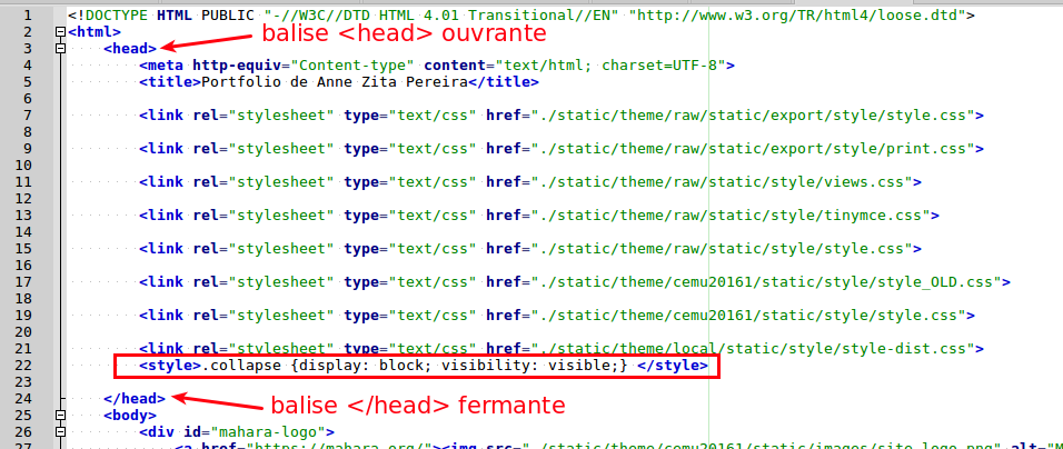 Améliorer les exports HTML de Mahara