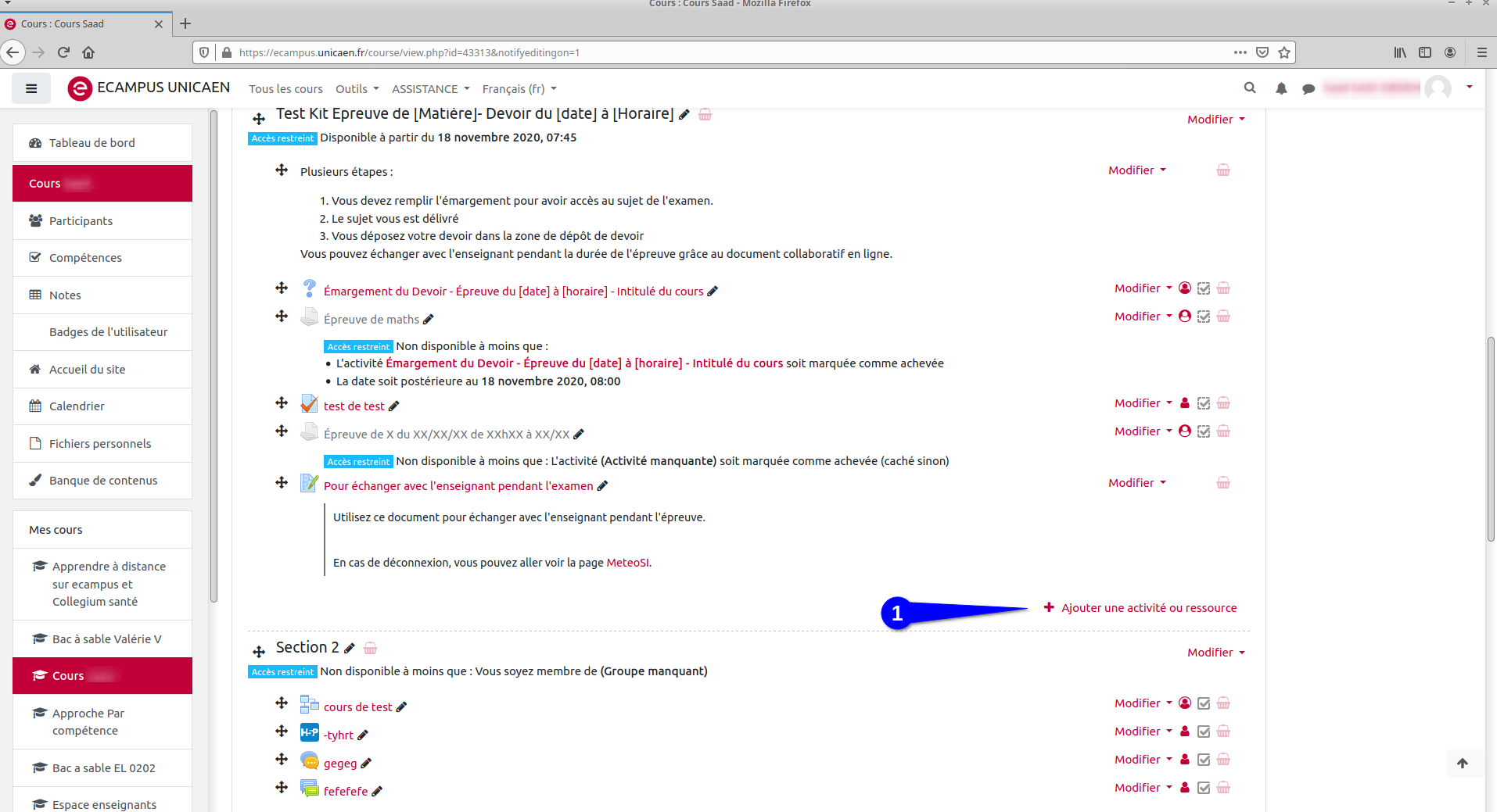 - Tout d'abord cliquer sur ajouter une activité ou ressource