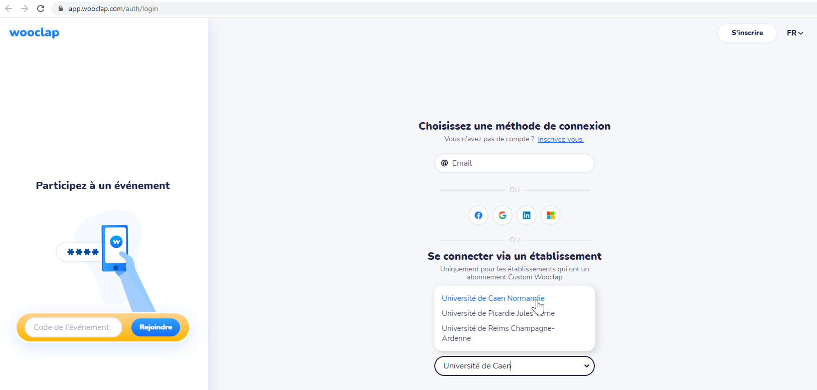 Adresse de connexion : https://app.wooclap.com/auth/login