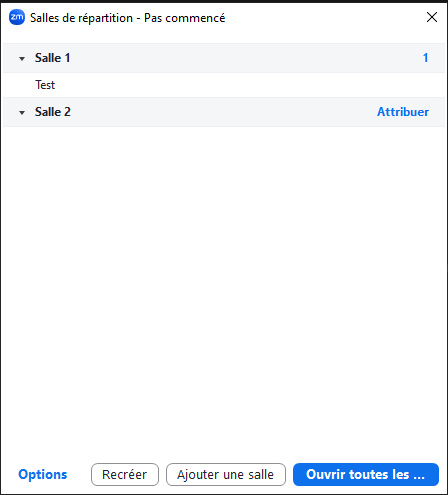 Si vous choisissez de laisser les participants choisir la salle, chaque participant aura le choix de rejoindre la salle qu'il souhaite.