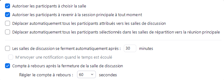 - Déplacer automatiquement tous les participants attribués vers les salles de discussion