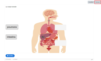 Vous continuez sur l'onglet “step 2” en ajoutant les étiquettes à déplacer. Une fois votre activité terminée, cliquez en bas de page sur “enregistrer”. Votre activité terminée apparaît sur une nouvelle page. Vous pouvez ainsi contrôler que cette dernière fonctionne convenablement. Si besoin, vous pouvez cliquer sur “modifier” pour apporter des modifications à votre activité.