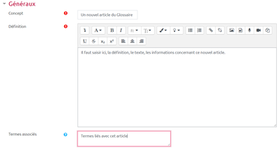 L'enseignant peut donner la possibilité aux participants de poster des commentaires sur les articles du glossaire.