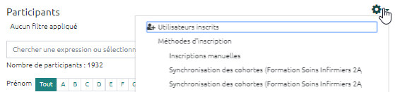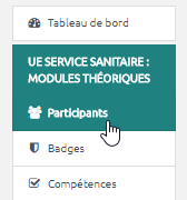 • Entrer dans l'espace de cours et cliquer sur “Participants” tout à gauche :
