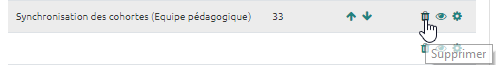 • Cliquer sur l'icône poubelle pour supprimer la cohorte intitulée “équipe pédagogique” :