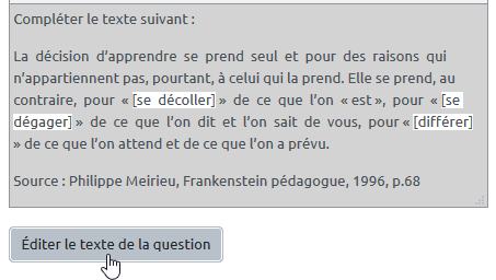 - si besoin de modification cliquer sur “Éditer le texte de la question”