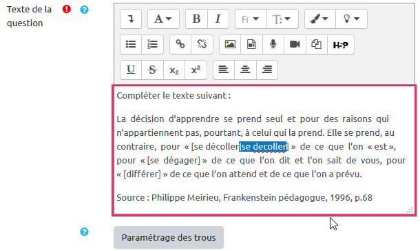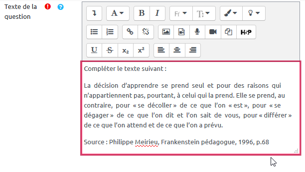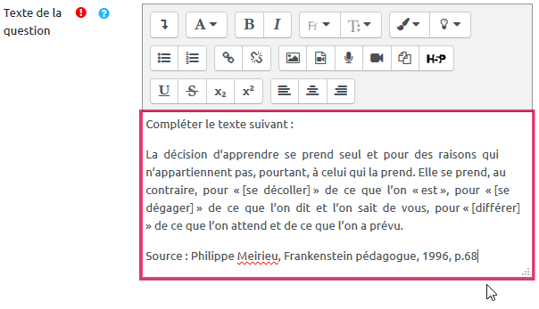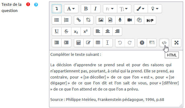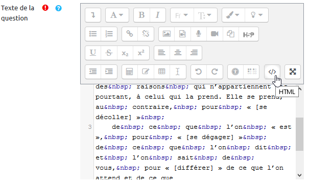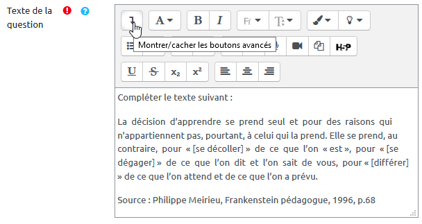 - retourner sur le texte de la question et cliquer sur le symbole pour afficher les boutons avancés