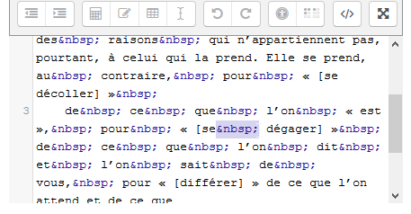 - une fois le texte corrigé, cliquer de nouveau sur le bouton </>